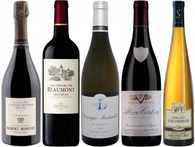 50 let - kolekce 5 vybraných lahví - Champagne, Bordeaux, Bourgogne, Alsace