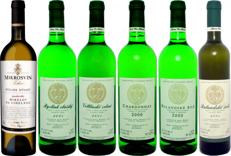 kolekce 6 vybraných lahví - starý Mikros-vín Mikulov - ročníky 2000, 2001 a 2002